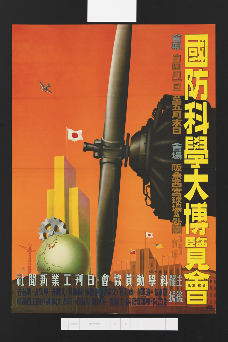 - 国防科学大博覧会 会期自四月一日至五月末日 会場阪急西宮球場及外園 第二会場宝塚 主催 財団法人科学動員協会・日刊工業新聞社 後援 陸軍省・海軍省・商工省・文部省・逓信省・鉄道省・大蔵省・厚生省・農林省・企画院・軍事保護院・大阪府・兵庫県・大阪市・京都・大阪・神戸商工会議所