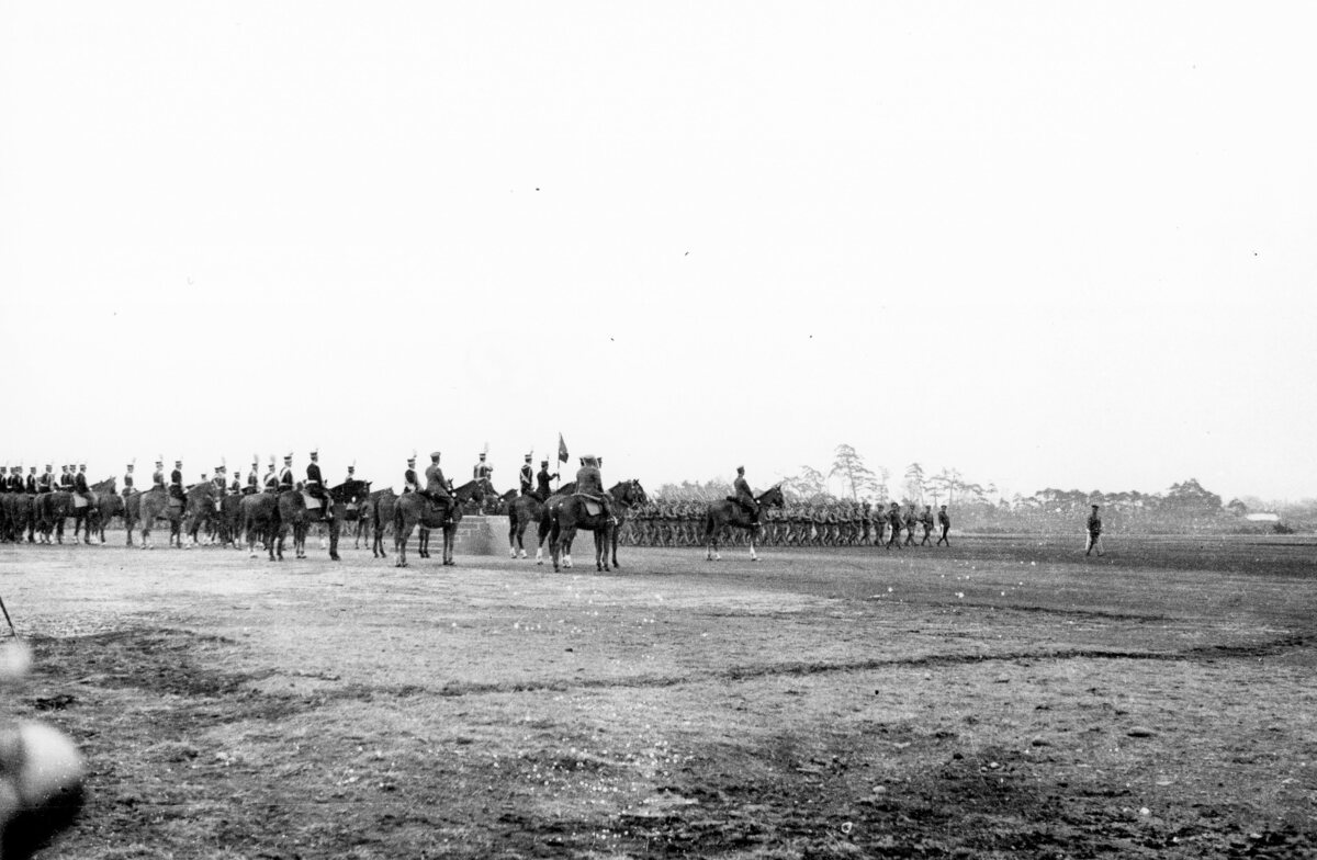 近衛師団観兵式の分列行進を観閲する昭和天皇と満洲国皇帝溥儀(満洲国皇帝来日)