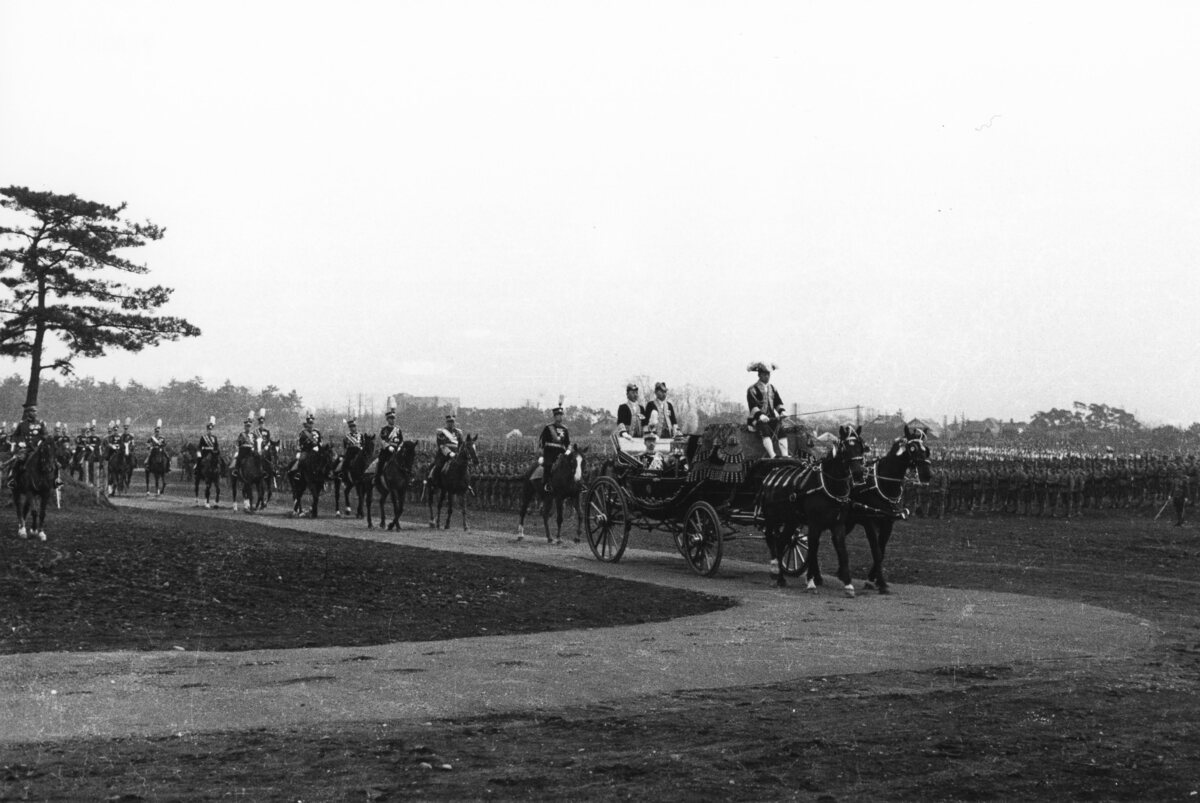 近衛師団観兵式に馬車で向かう昭和天皇と満洲国皇帝溥儀(満洲国皇帝来日)