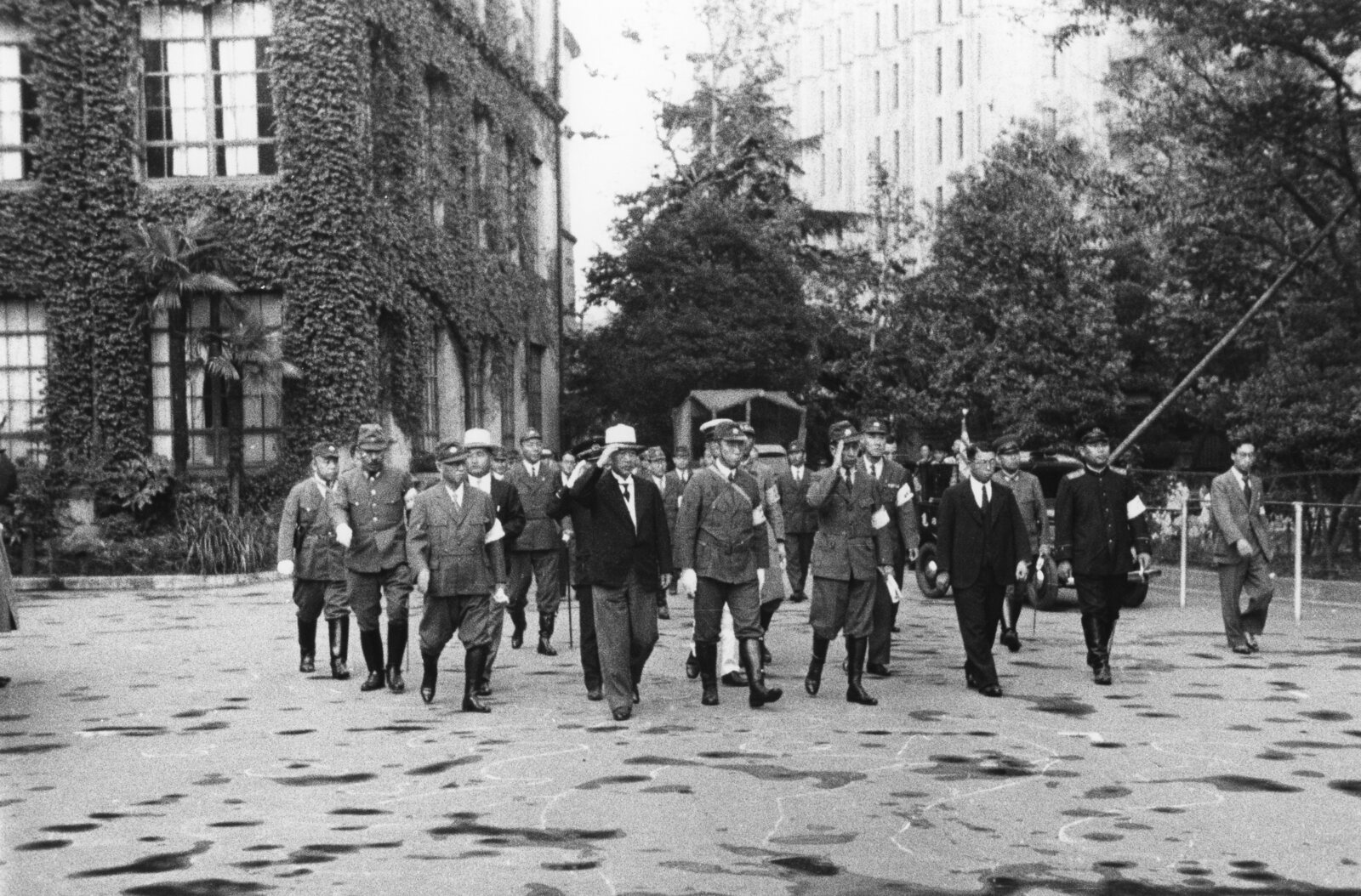 銀座の防空訓練を視察する末次内相と小橋東京市長(昭和十三年度第一次東部防空訓練)