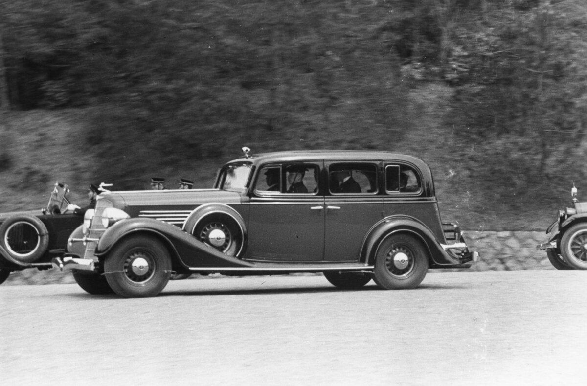 多摩御陵に到着した自動車(満洲国皇帝来日)