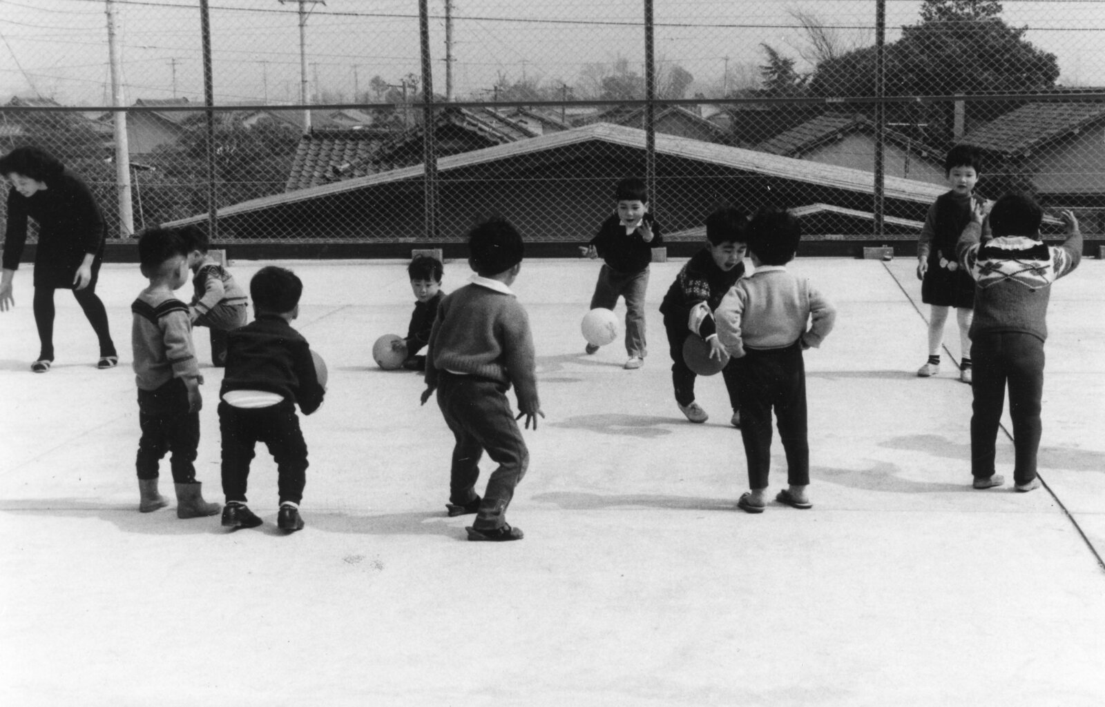 愛児の家の屋上でボールで遊ぶ子どもたち