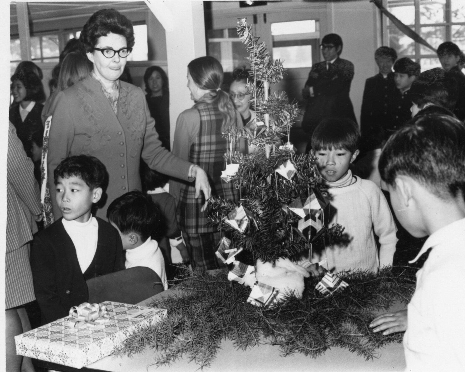 アメリカ軍開催のクリスマスパーティーに招待された愛児の家の子どもたち。
