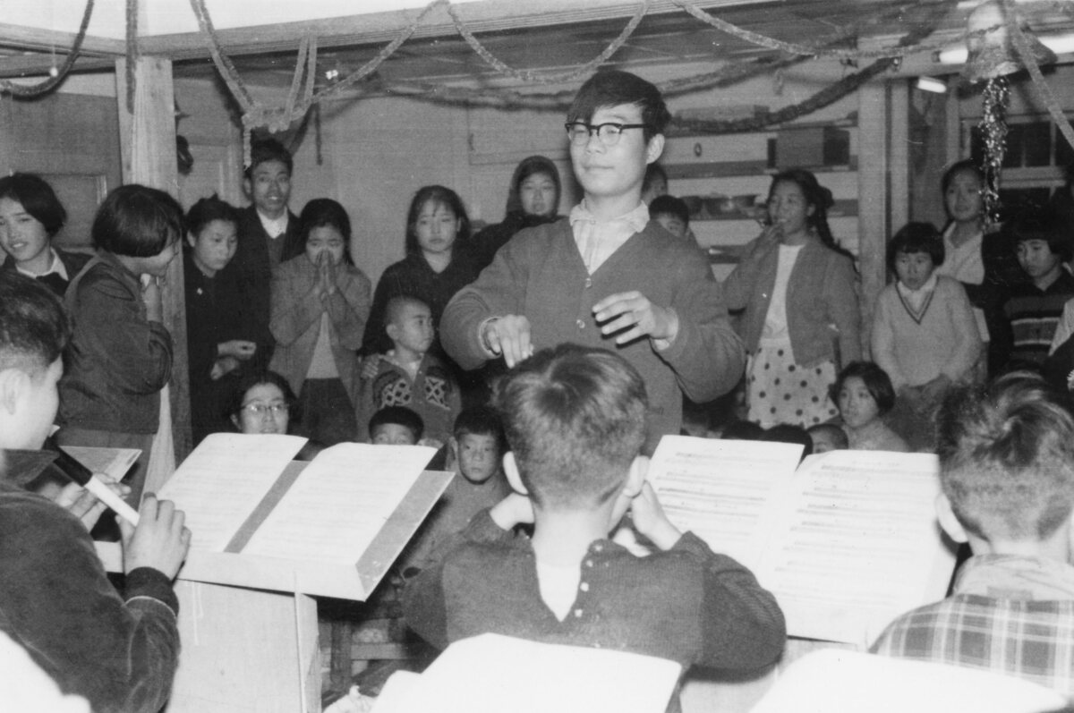 愛児の家のクリスマス会。演奏する子どもたち。