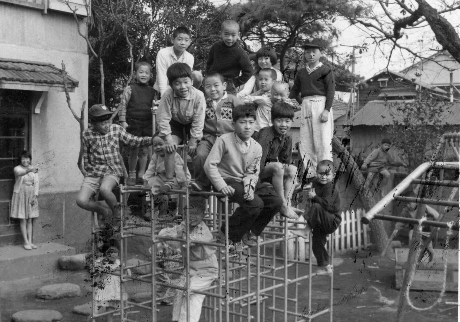 ジャングルジムに登る子どもたち
