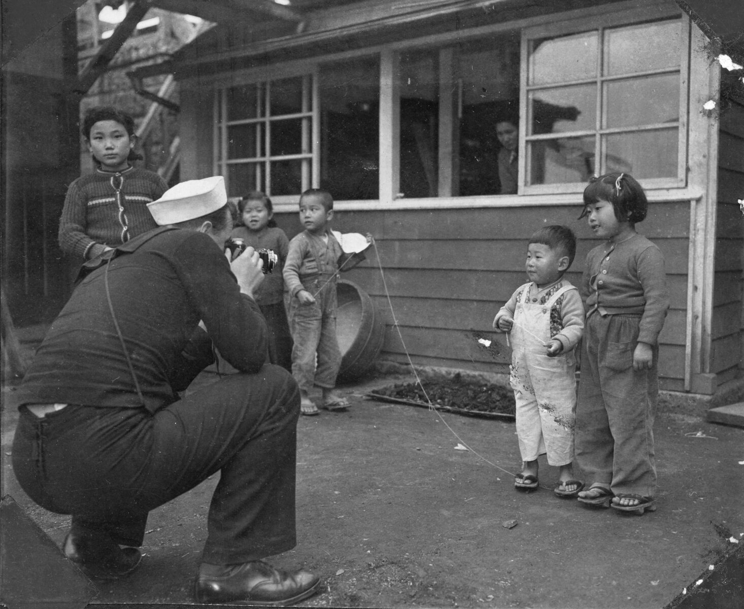 子どもたちを撮影する米兵