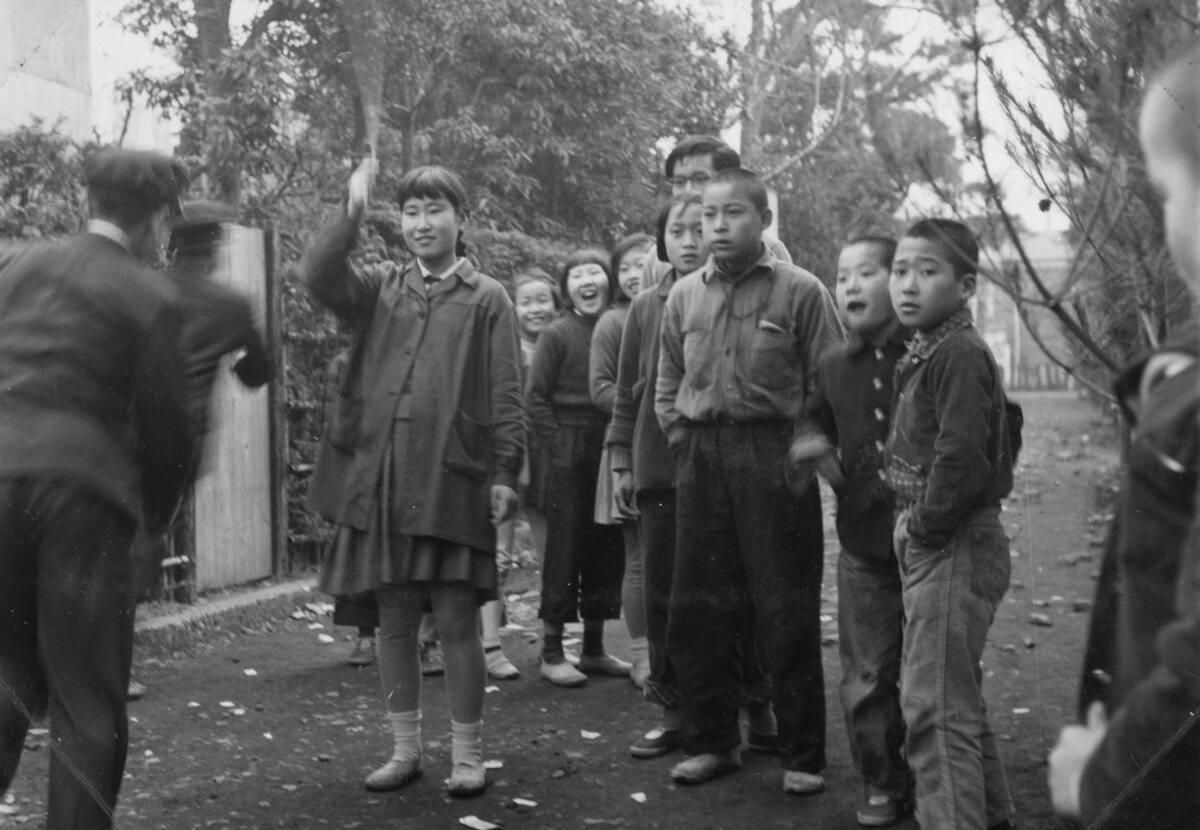 大縄跳びで遊ぶ、愛児の家の子どもたち。