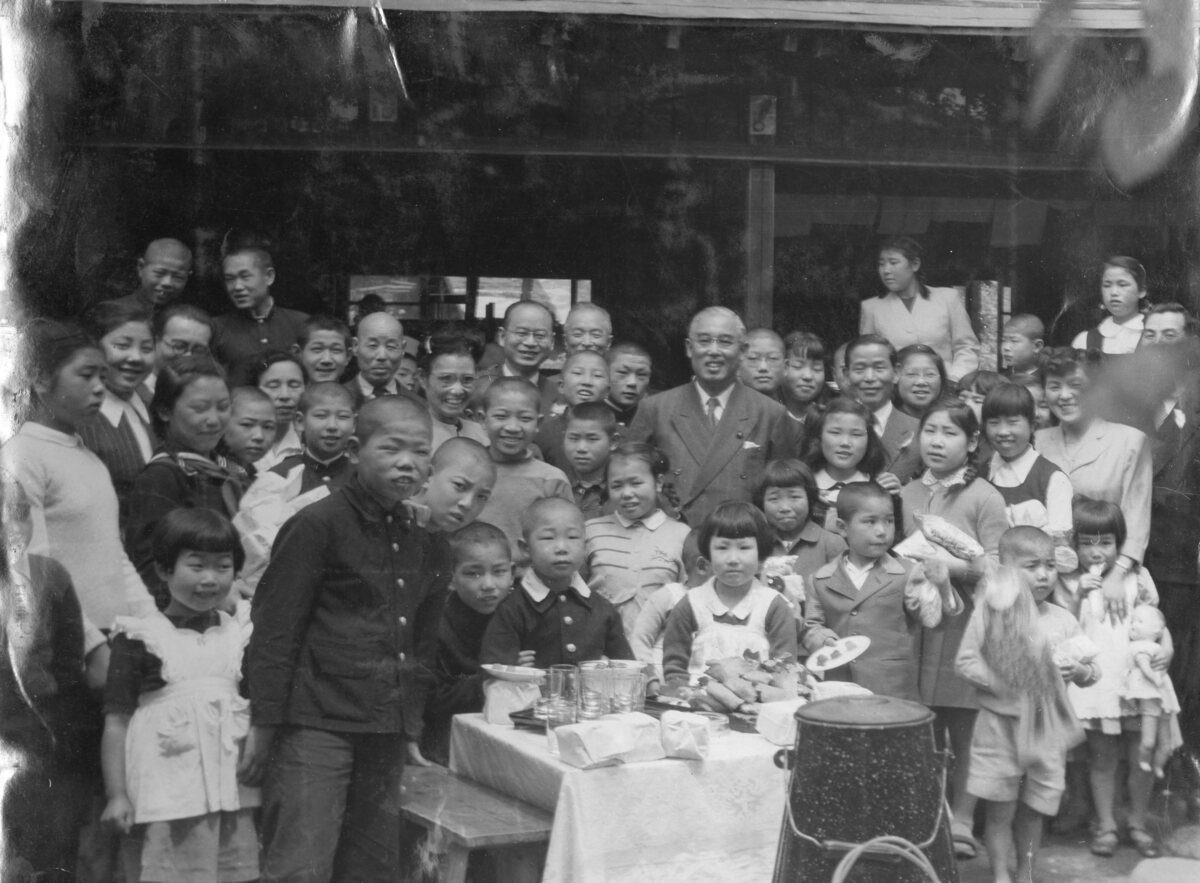 写真コウセイダイジンヲカコムコドモタチ
