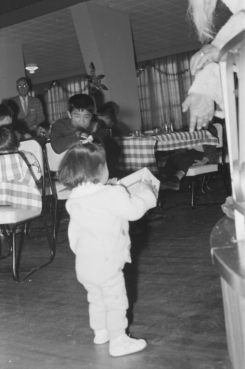 写真サンタクロースカラプレゼントヲウケトルジョジ(クリスマスパーティー)