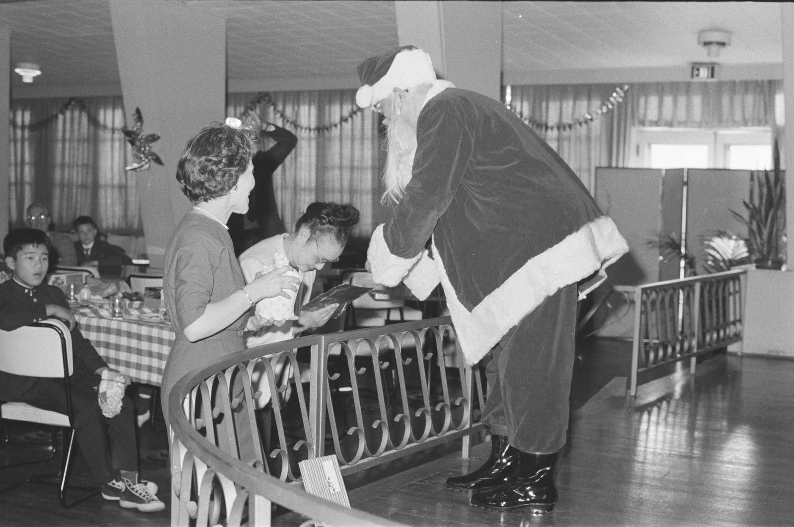 サンタクロースからプレゼントを受け取る石綿貞代(クリスマスパーティー)