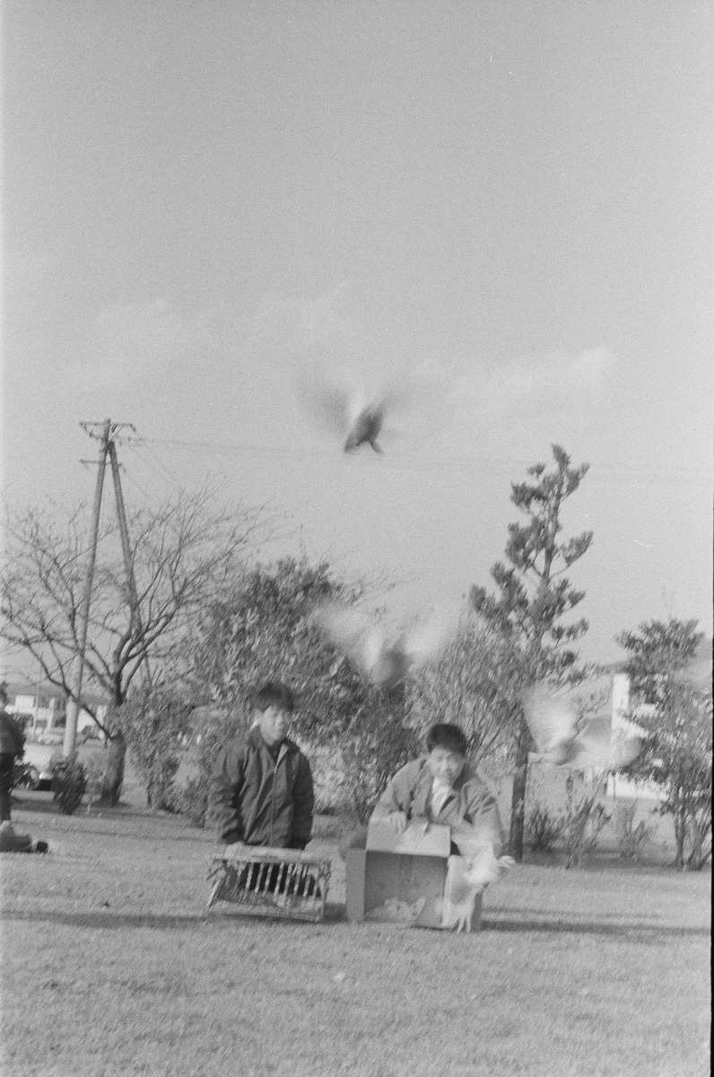 鳩を放す子どもたち