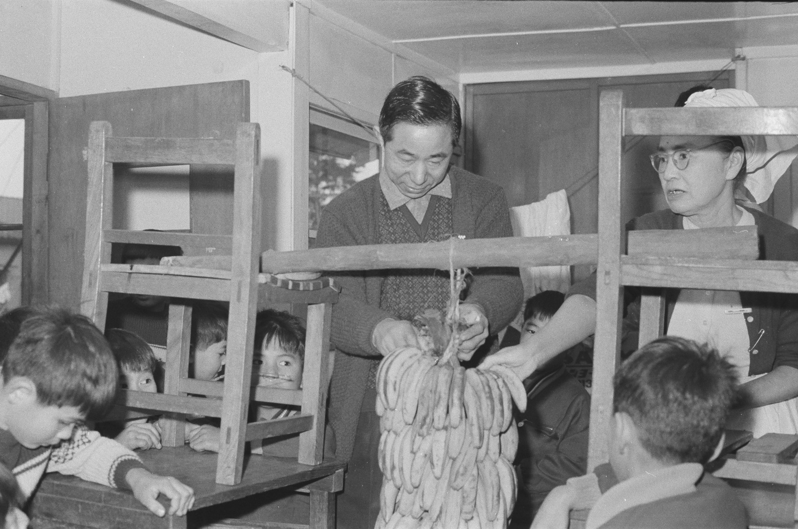 写真バナナヲモラウコドモタチ