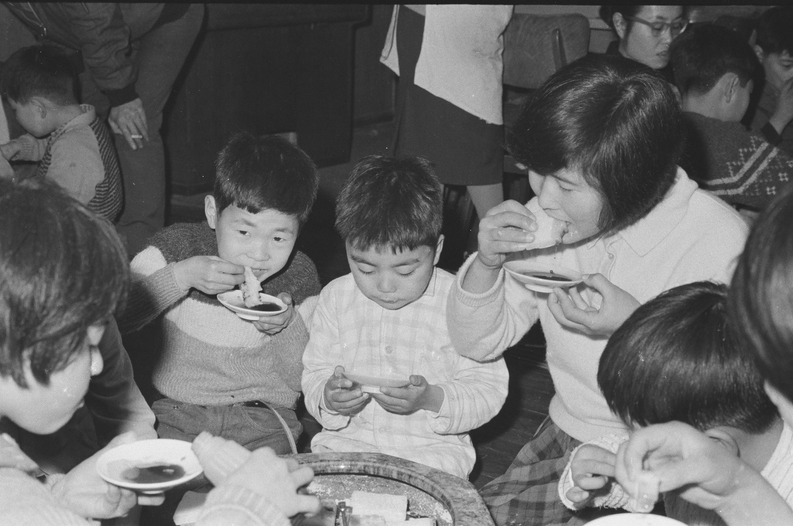 写真ショウガツニモチヲタベルコドモタチ