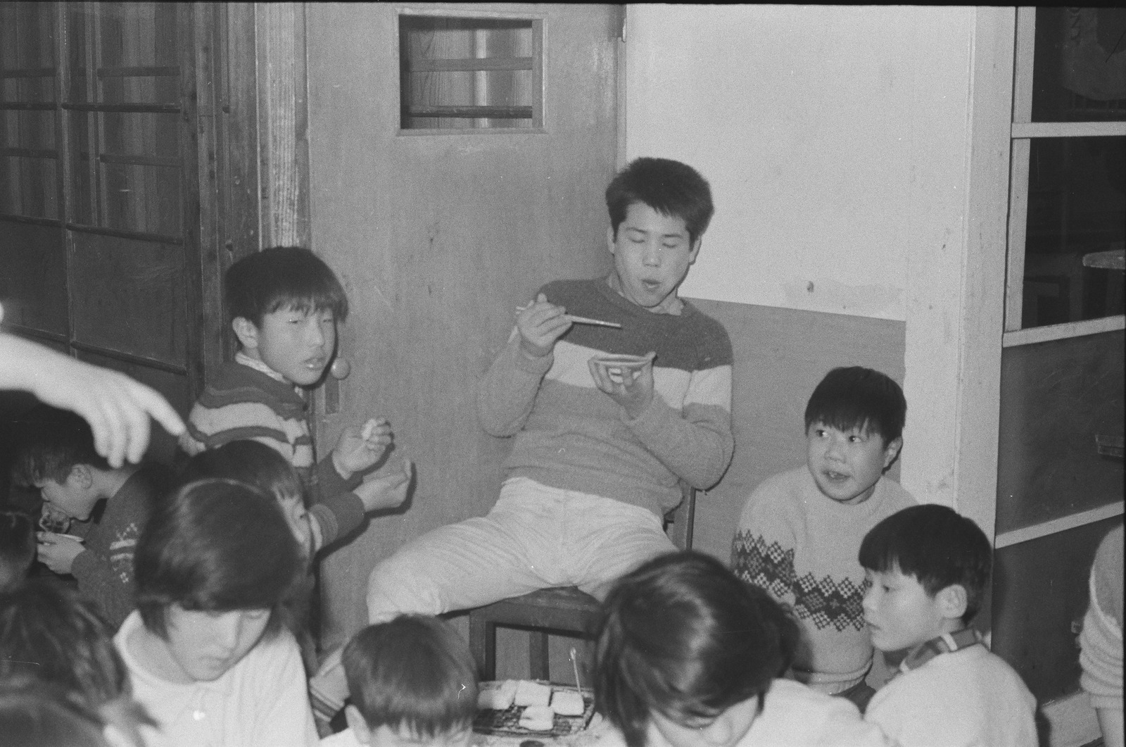 写真ショウガツニモチヲタベルコドモタチ