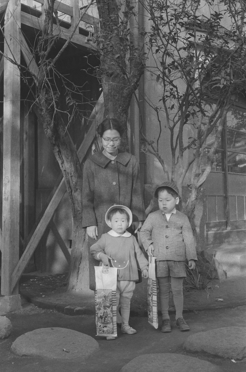 七五三を祝う記念写真。千歳飴を持つ男児と女児。