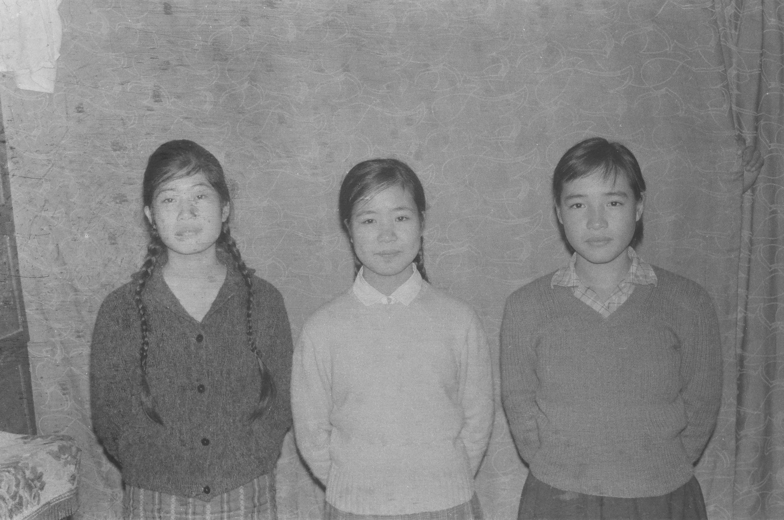 中学三年生の女の子たち。証明書用に撮影。私服。