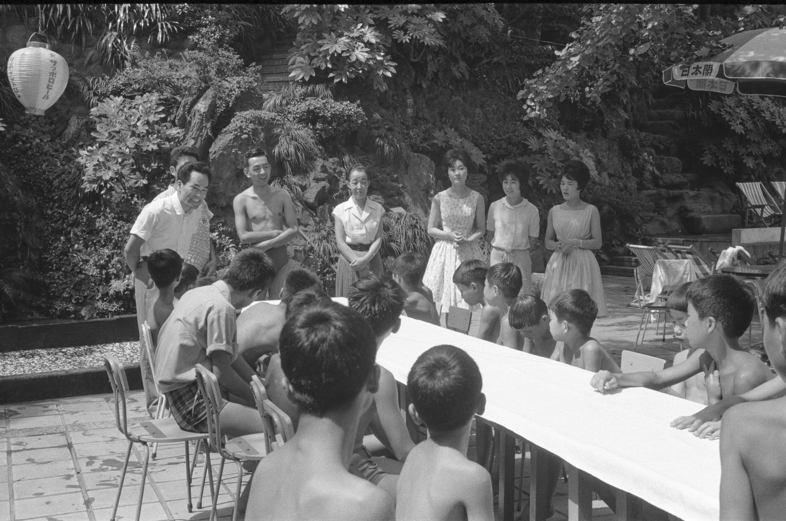 写真ニホンカクノガーデンプールヲタノシムコドモタチ