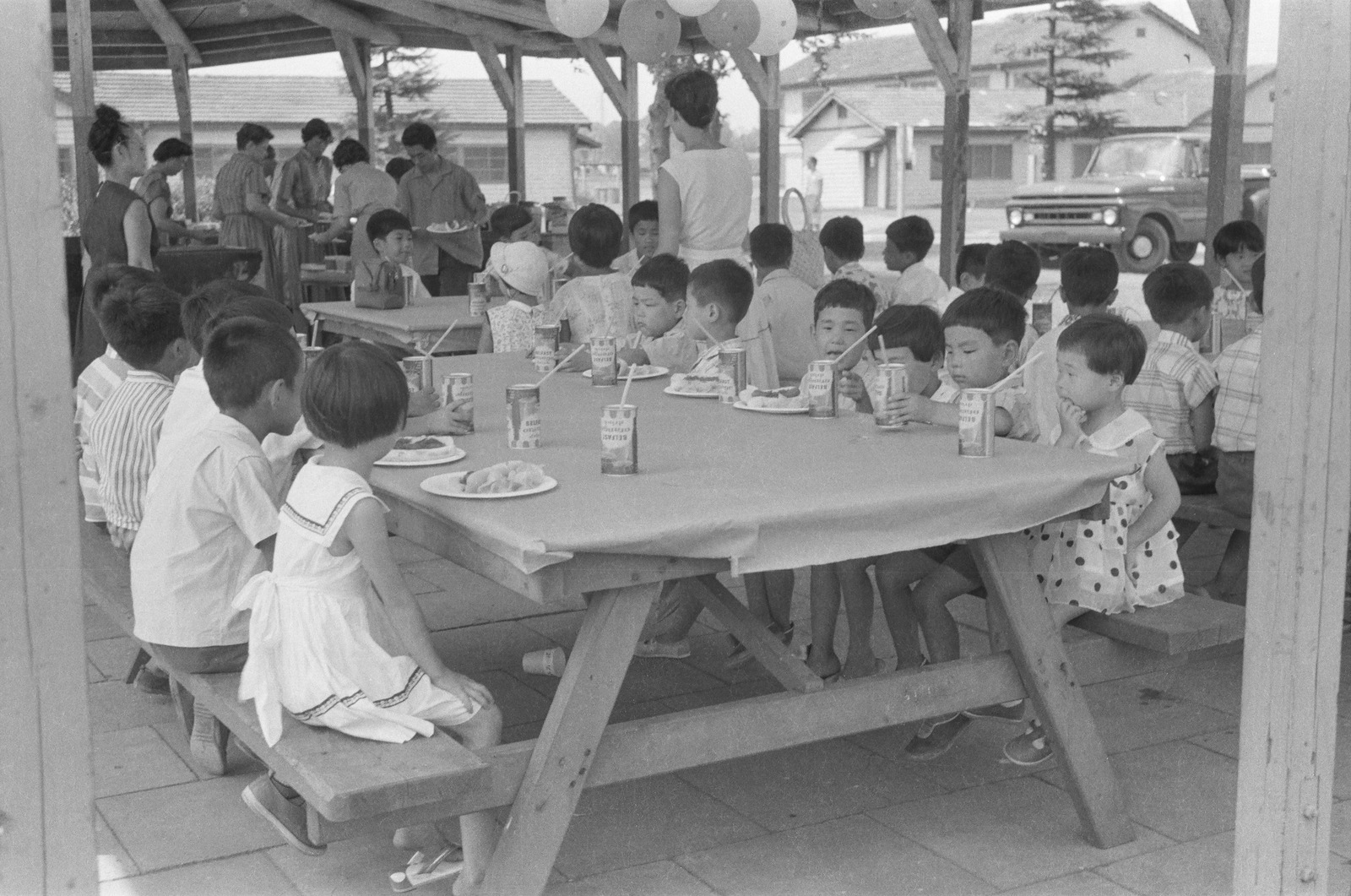 キャンプ・ドレイクで食事する子どもたち