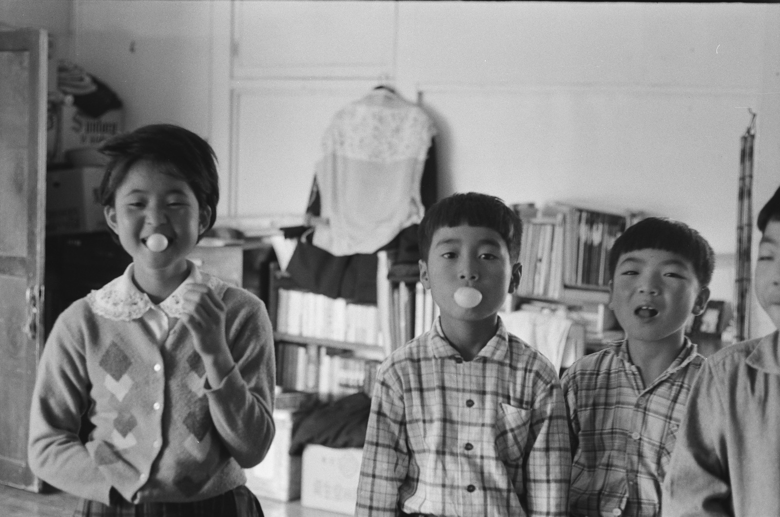 写真フーセンガムデフウセンヲツクルコドモタチ