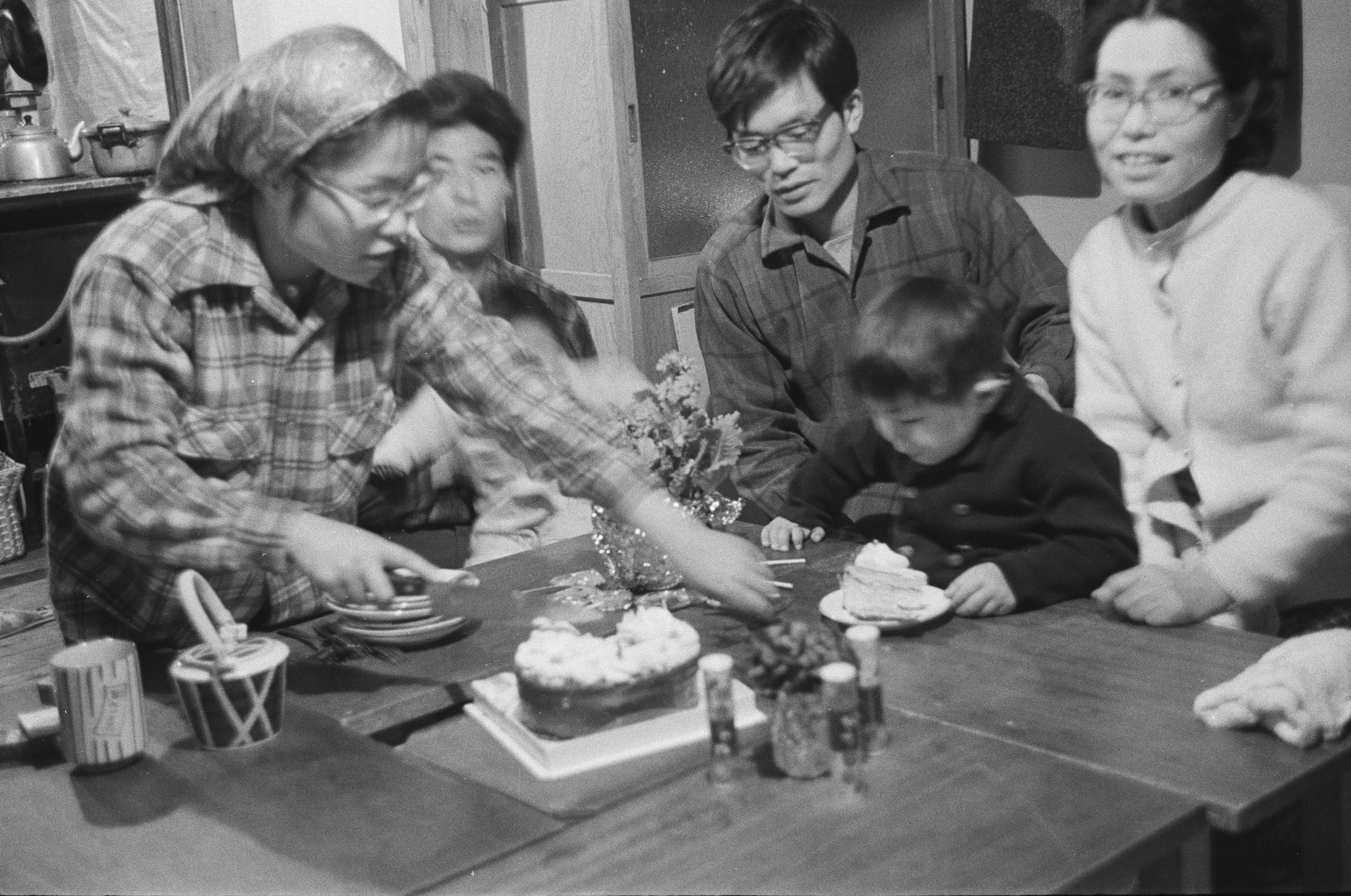 ケーキを囲む