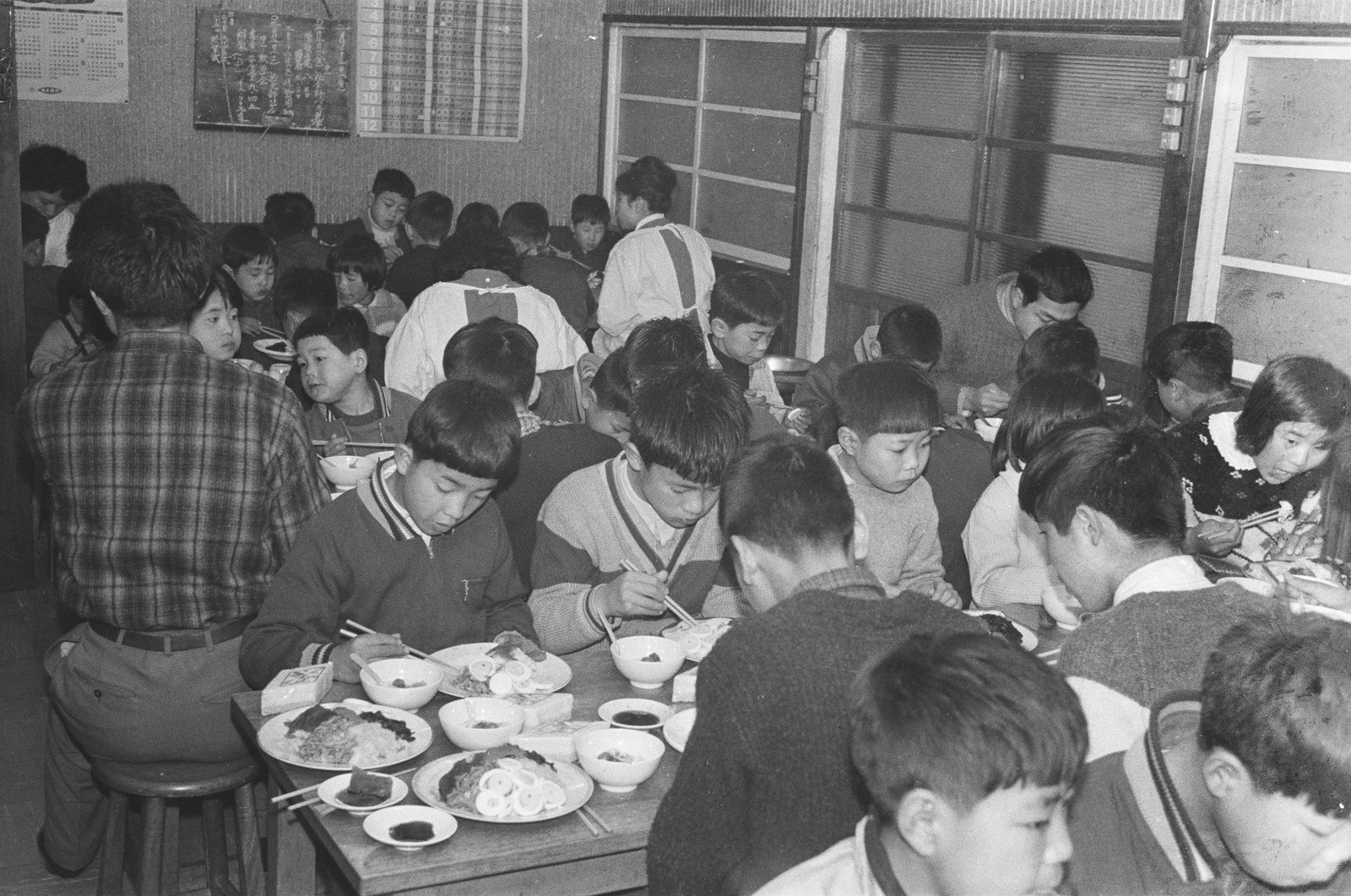 食堂でごはんを食べる子どもたち。