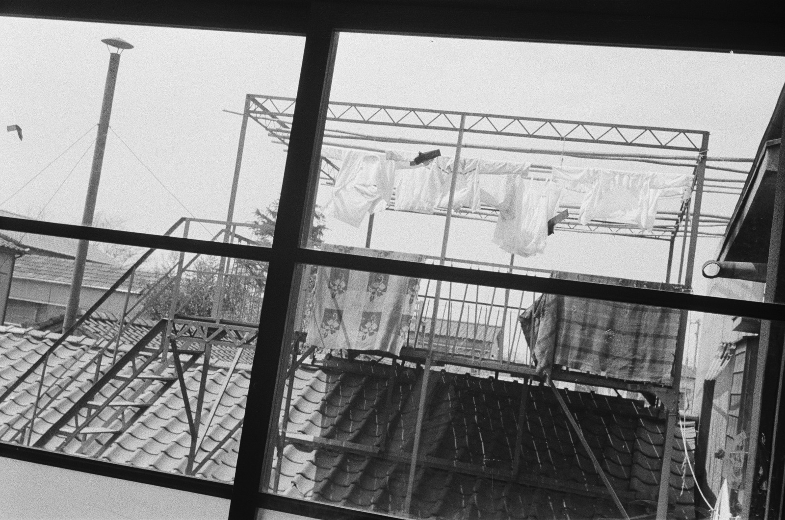 愛児の家の屋根の上は洗濯物を干す場所となっている。