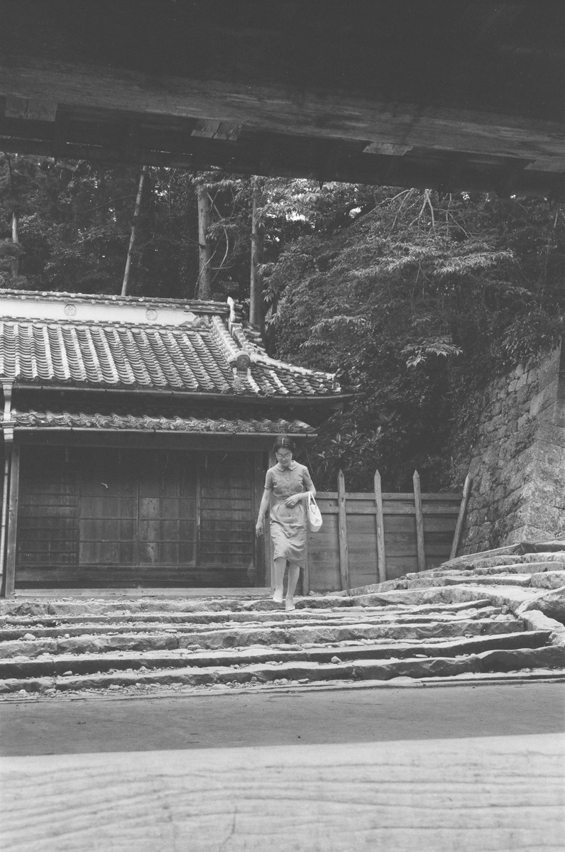 石段を降りる石綿家の二女・純子。