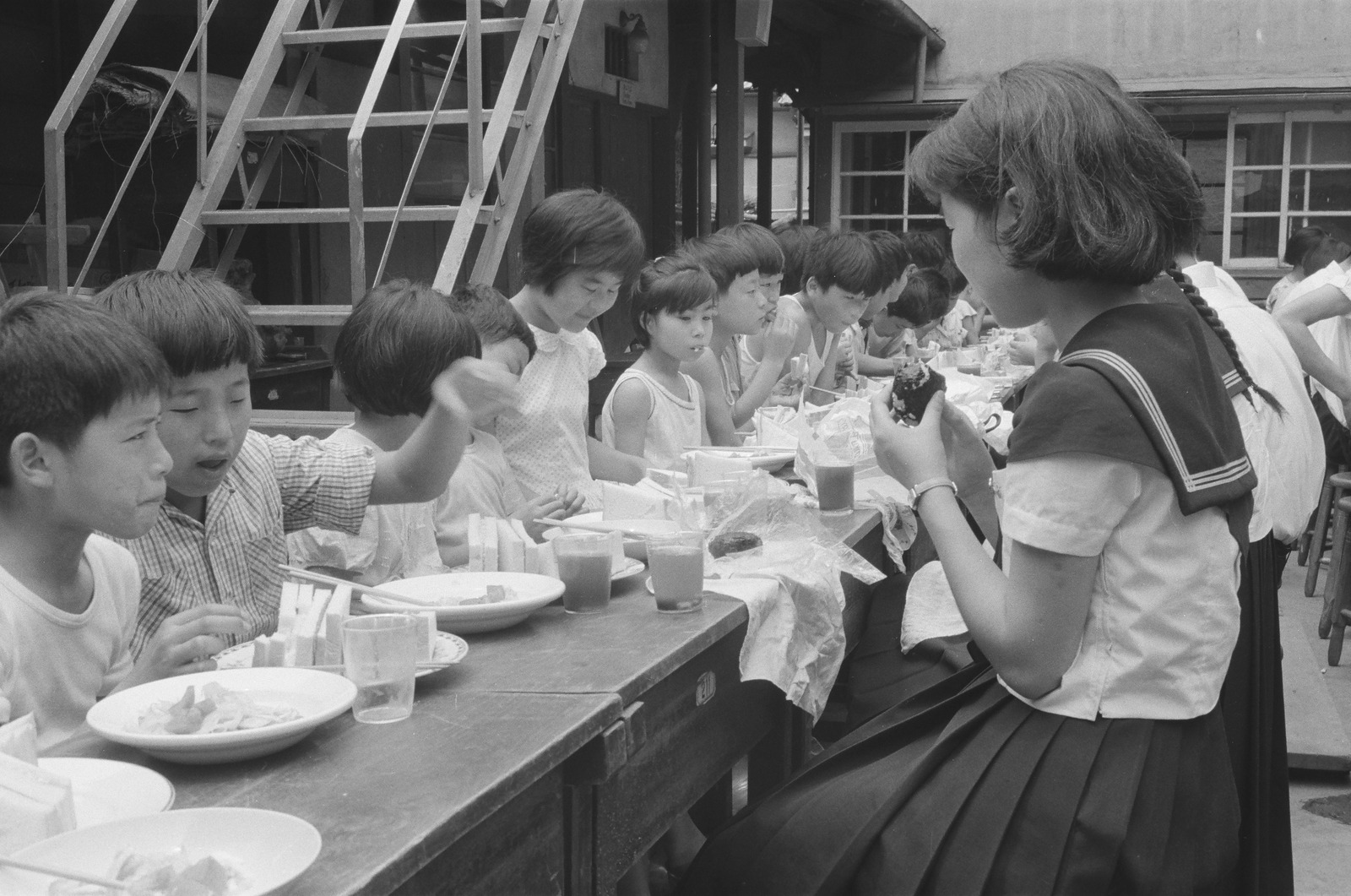 庭での昼食