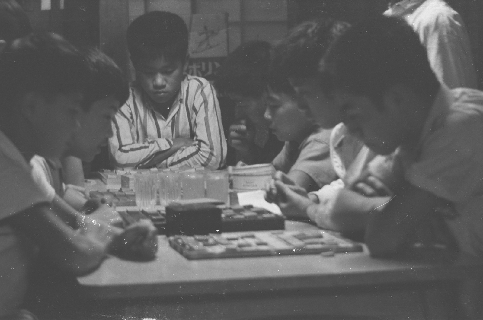 将棋を指す子どもたち。