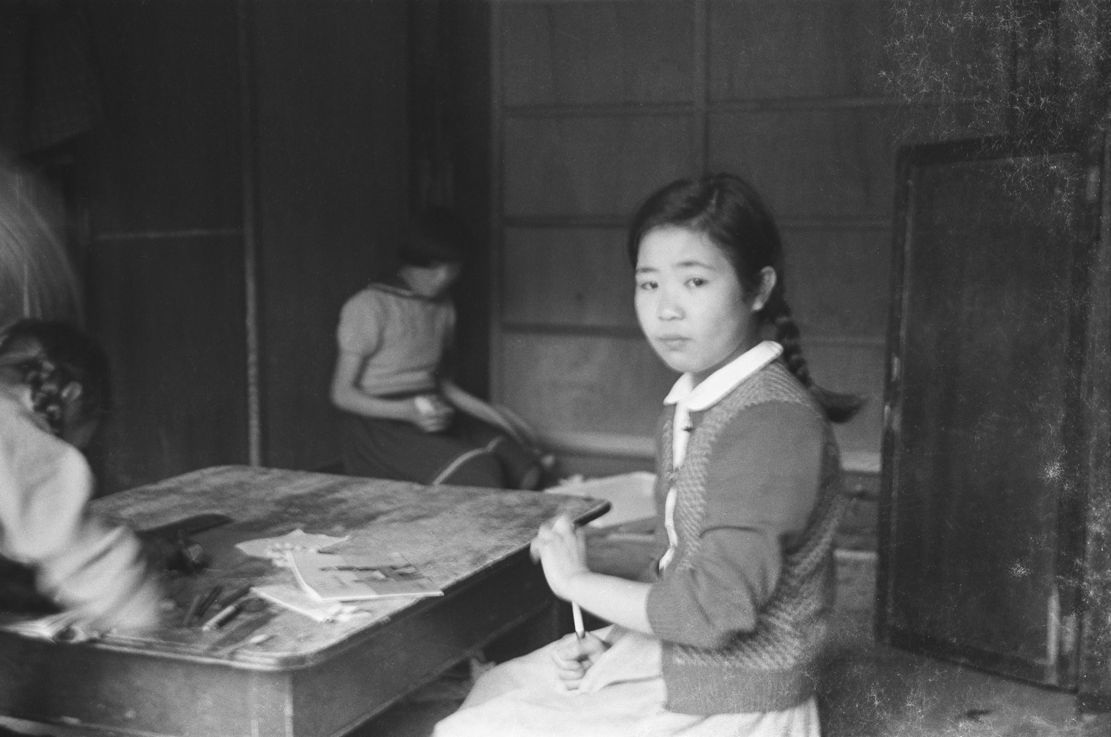 おさげの女の子。