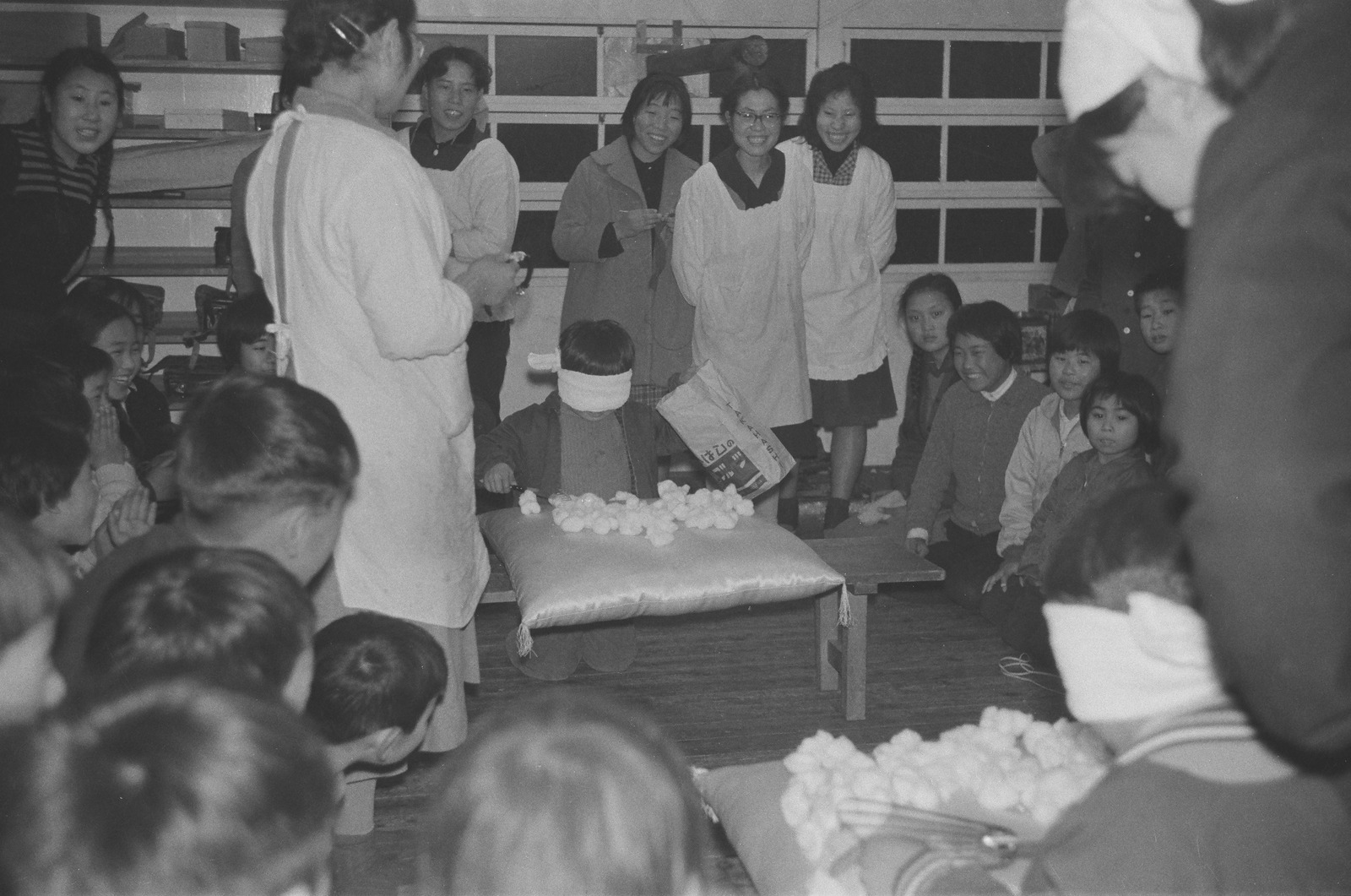 目隠しをして綿を入れるゲーム