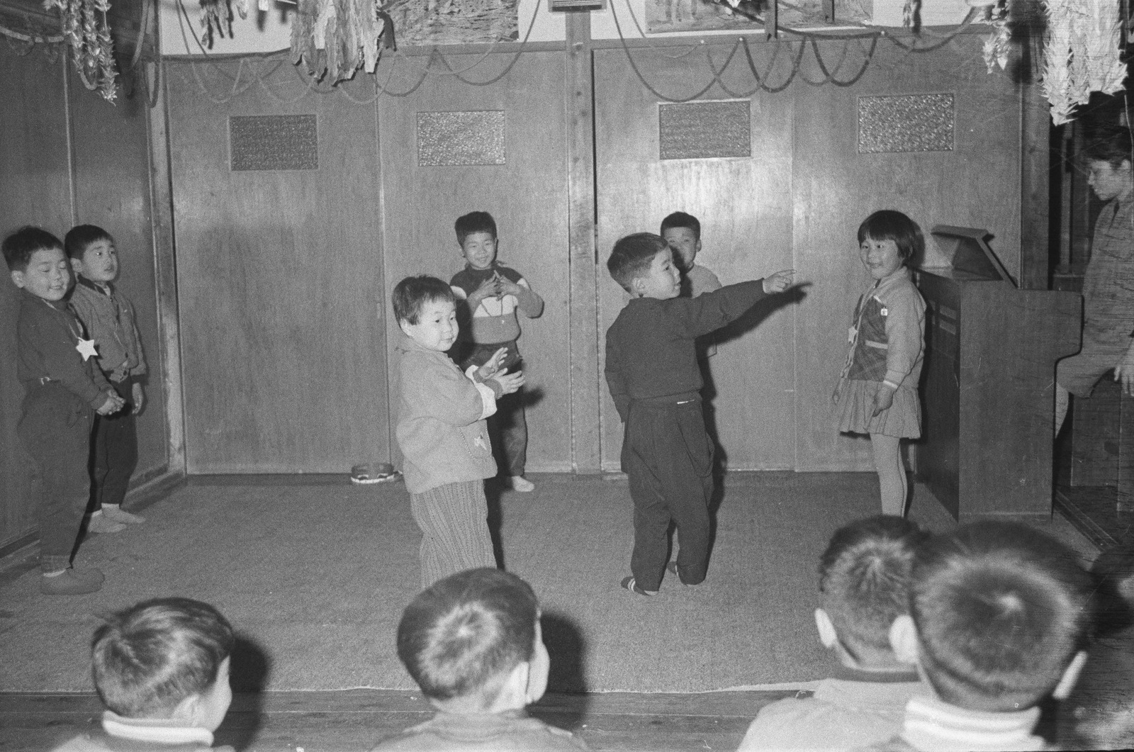 写真クリスマスカイノヨキョウヲスルコドモタチ
