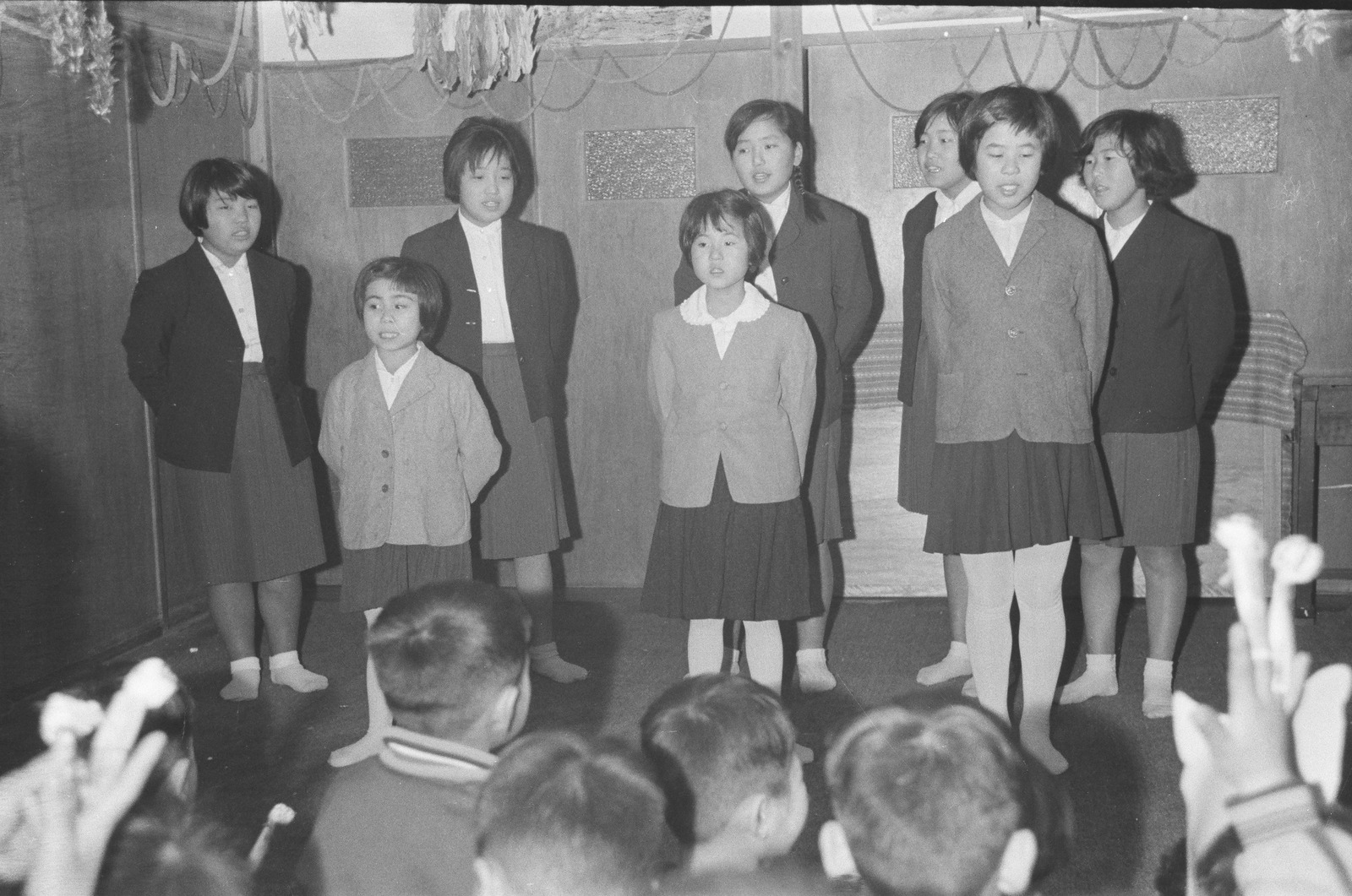 写真クリスマスカイノヨキョウヲスルコドモタチ