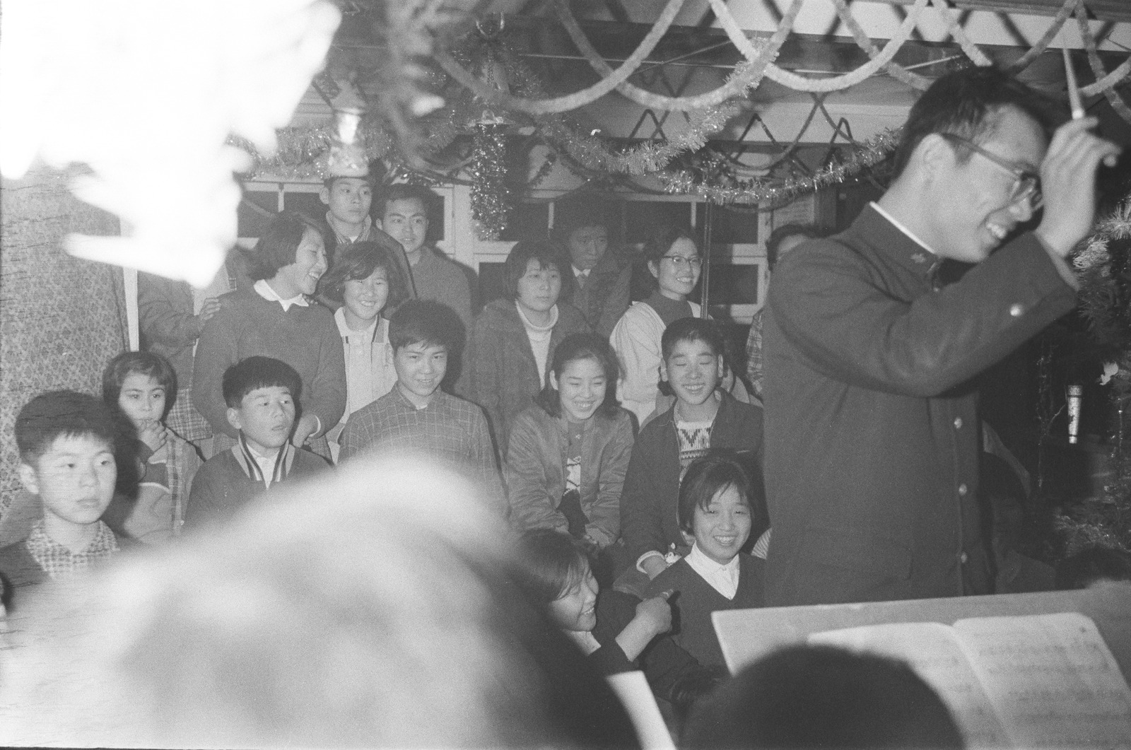 写真クリスマスカイノヨキョウヲスルコドモタチ