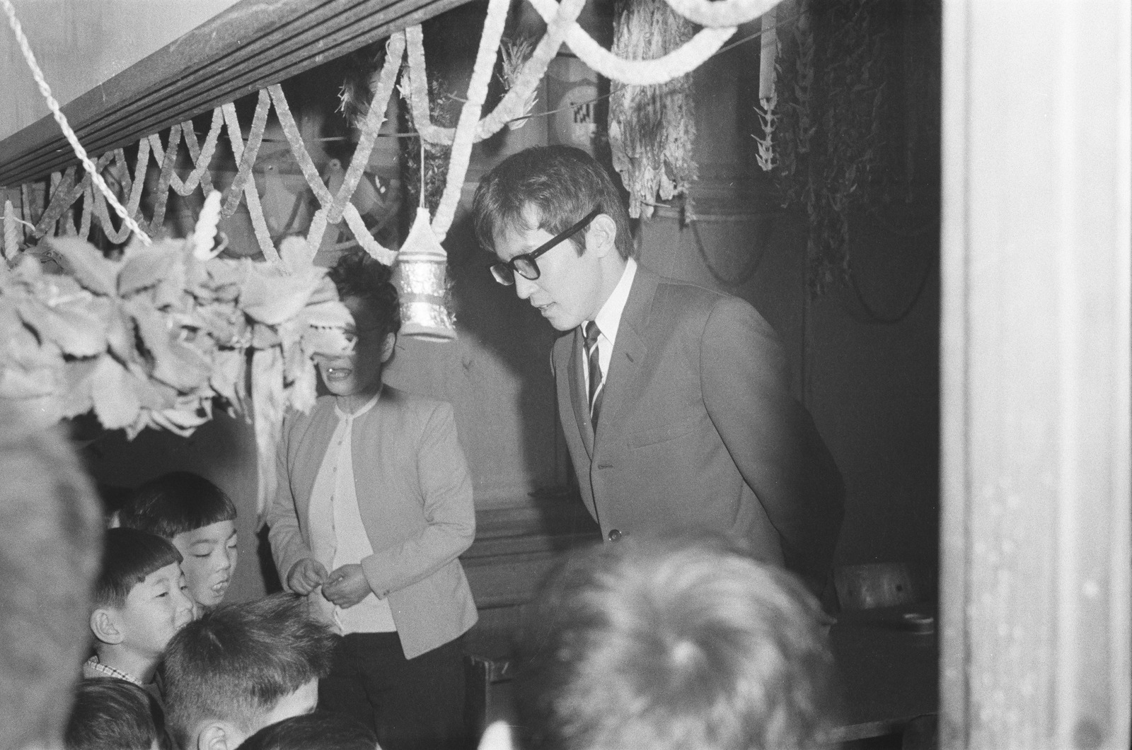 愛児の家を訪れた歌手の守屋浩