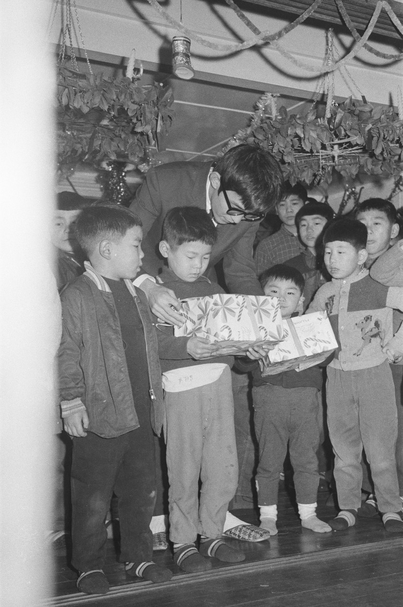 愛児の家を訪れた歌手の守屋浩
