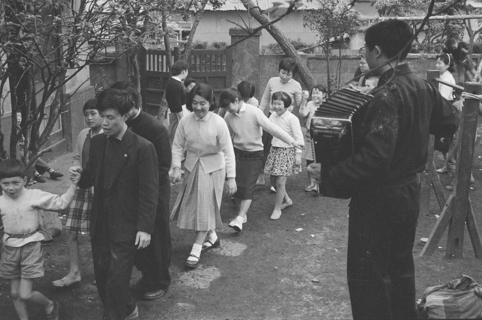 写真アコーディオンノエンソウニアツマルコドモタチ