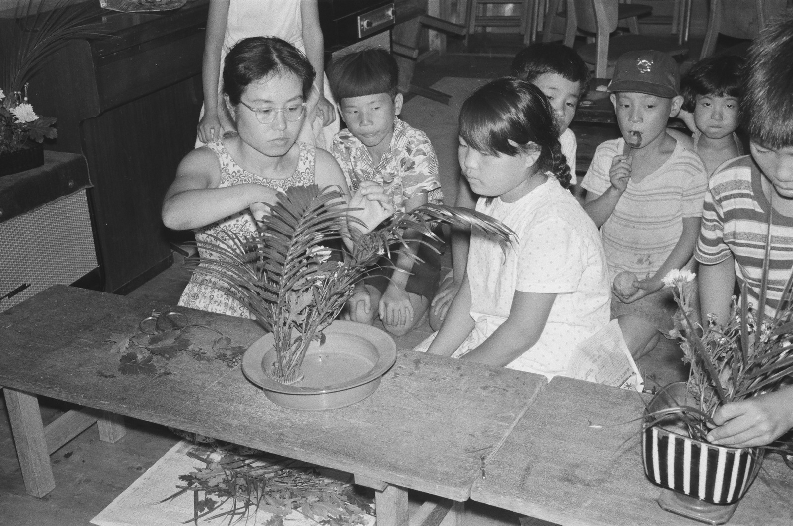 いけ花を教える三女の裕