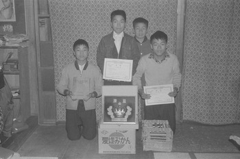 鳩レースで表彰された子ども達