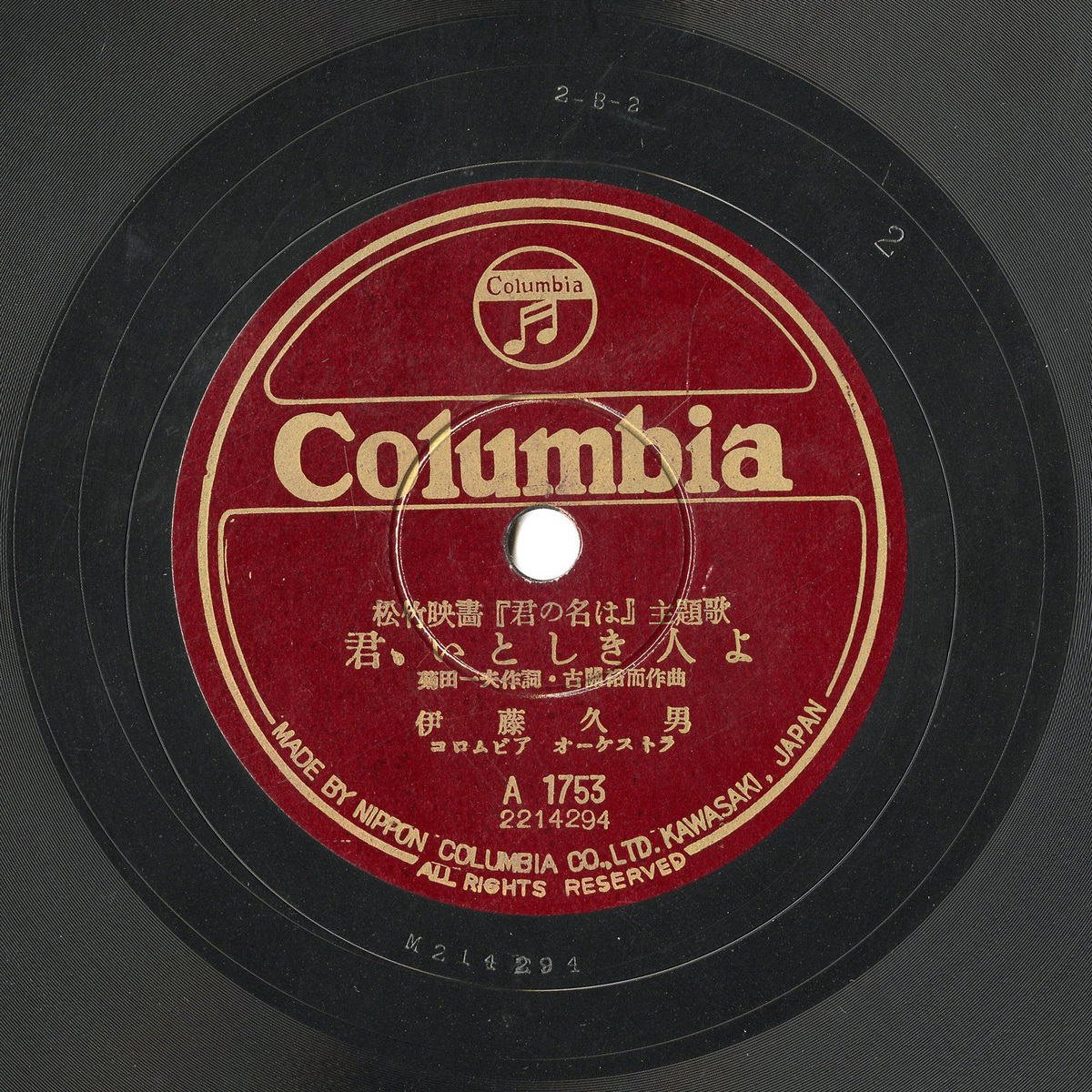 SPレコードキミ、イトシキヒトヨ資料番号:SPH11MK010000B